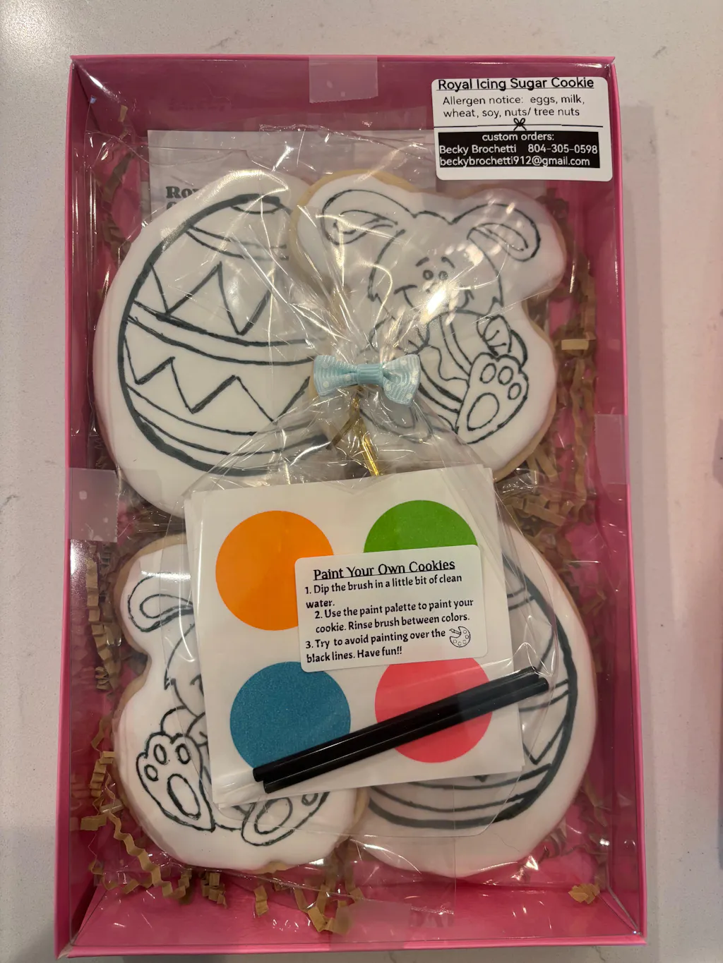 Palettes of edible paint, that works just like watercolors. You can use these palettes with our PYO (Paint Your Own) cookie designs, or simply as a fun and creative way to paint a blank cookie covered in royal icing.