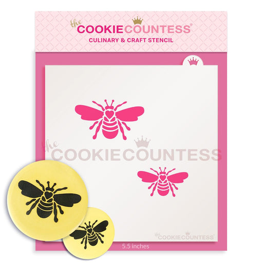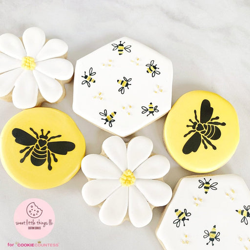 Honey bee 2 sizes stencil. Design sizes are 1.5" and 2.25". For easiest application, use with the Cookie Countess Stencil Adaptor Set. The small be...