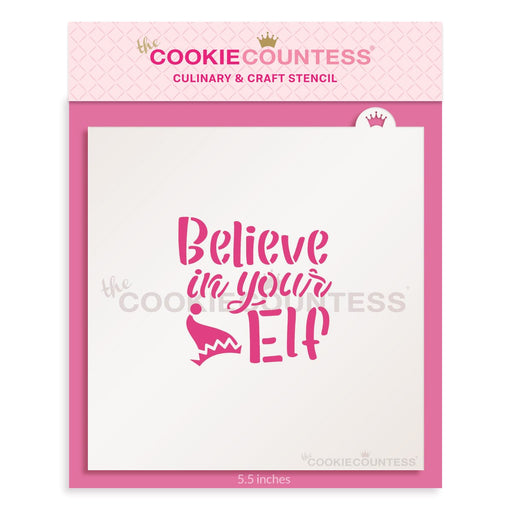 Believe in your Elf Stencil Design size is approximately 2.5 x 2.4" Overall size approximately 5.5" x 5.5". PINK sections in image are the open se...