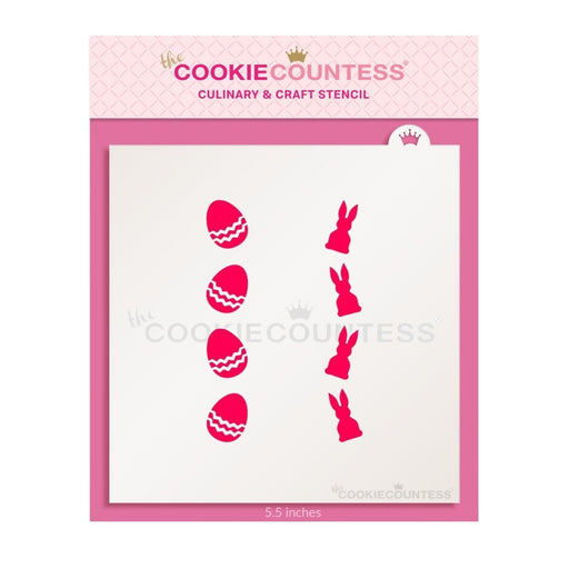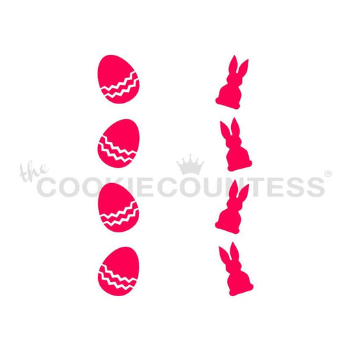 Eggs & Bunnies vertical stencil for cookie sticks. Design sizes are .65" x 3.78" and .60" x 3.78" Overall stencil size is approximately 5.5" x...