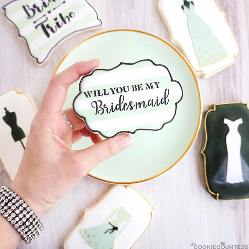 The Cookie CountessA memorable and creative bridesmaid proposal! Overall stencil size is 5.5" x 5.5". Design is 1"x 3.5" PINK sections in image are the open sections...