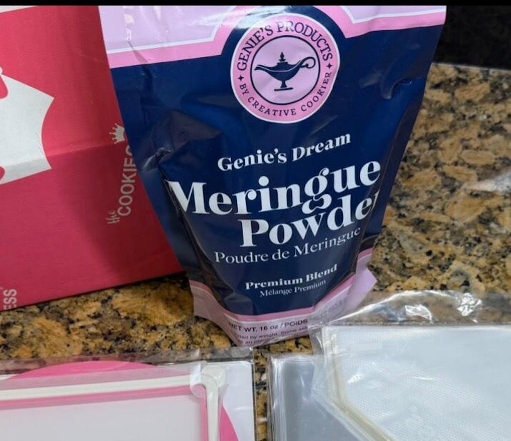 Genie's Dream Meringue Powder 1lb. This is a meringue powder like no other. Made of the best quality ingredients, it will give your royal icing a taste and sheen like never before. It has a wonderful smell and dries beautifully.