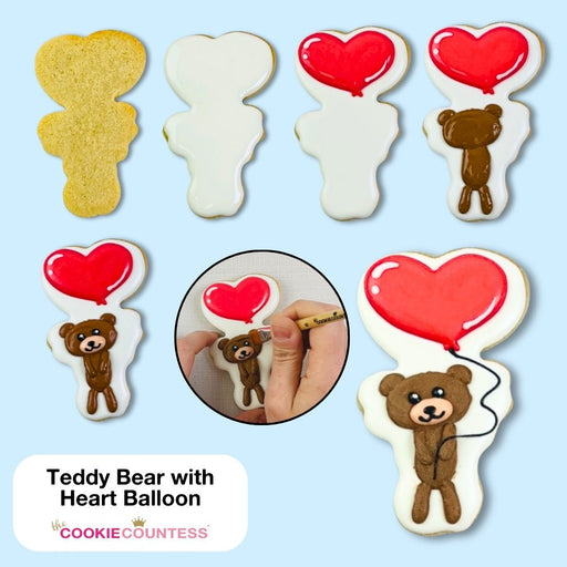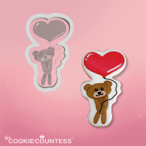 Teddy Bear with Heart Balloon Cookie Cutter Cutter Measures 2.5" 4.5" All elements of this original cookie cutter were designed by The Cookie Count...
