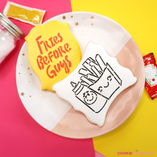 Fries Before Guys stencil. It's girl code! Declare your love for fries and independence with our Fries Before Guys Stencil. Perfect for creating qu...