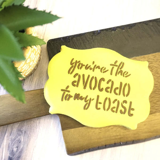 You're the Avocado to my Toast stencil. Design size is approximately 2 x 2.8" Overall stencil size is 5.5" x 5.5". PINK sections in image are the o...