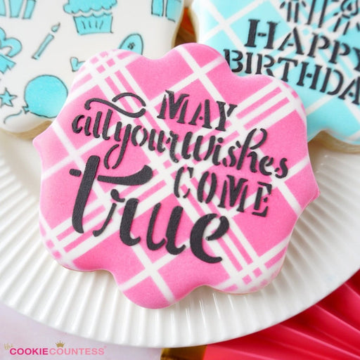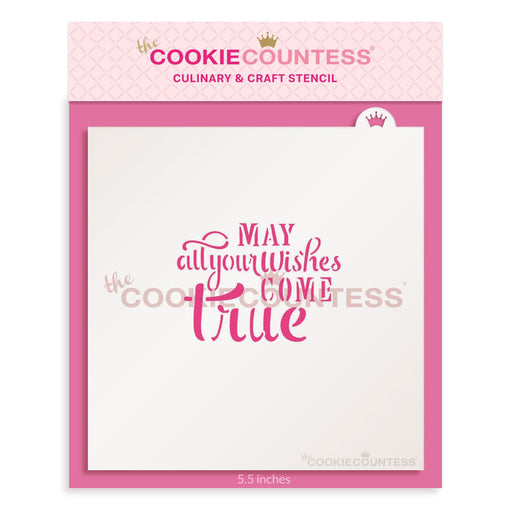 May all your wishes come true stencil, for birthdays Design size is approximately 1.9 x 1.4" Overall size 5.5" x 5.5". Stencils are 5mil Food Grad...