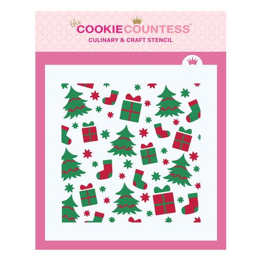 The Cookie Countess3 Piece Snowflake set Design size is 2.66" x 3.25" Overall size 5.5" x 5.5". PINK sections in image are the open sections. Stencils are 5mil Food ...