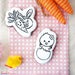 Carrot and Bunny Buddies stencil.  Design size is 3" x 2.92"  Use as a PYO (Paint your Own) stencil, or as it's own design! Overall stencil size is approximately 5.5" x 5.5". PINK sections in image are the open sections. Stencils are 5mil Food Grade plastic, washable and reusable.