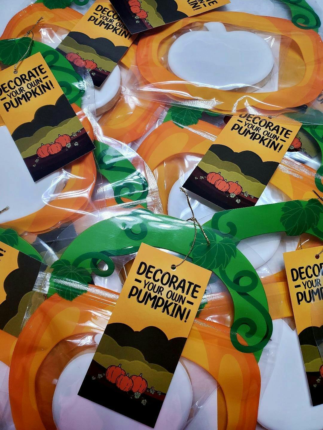 Get 25 professionally printed cards that include PYO pumpkin cookie instructions, for creating Jack o Lantern kits for Halloween.