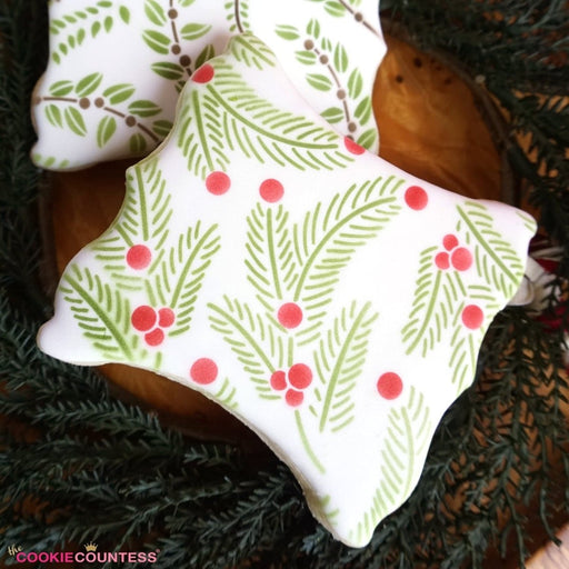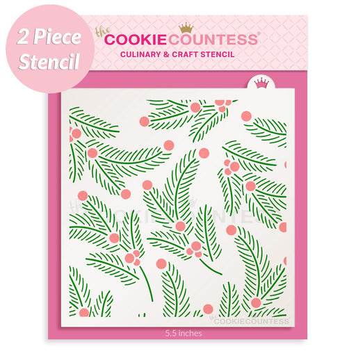 2 piece Foliage stencil set. Holly or fir tree winter greenery, perfect for Christmas. Overall size approximately 5.5" x 5.5". PINK sections in im...