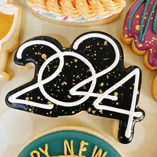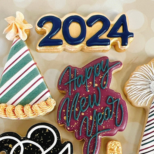 The Cookie CountessHappy New Year Cutter Cutter Measures 3.25 x 4.75 inches All elements of this original cookie cutter were designed by The Cookie Countess with the...