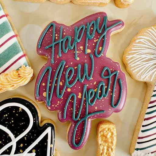 The Cookie CountessHappy New Year Cutter Cutter Measures 3.25 x 4.75 inches All elements of this original cookie cutter were designed by The Cookie Countess with the...