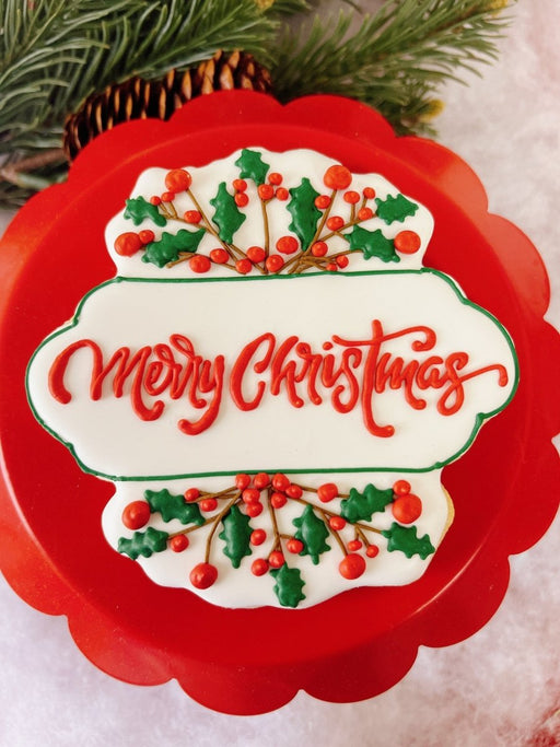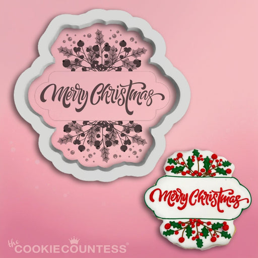 Merry Christmas Plaque Cutter Measures: 3.75" x 3.5 inches All elements of this original cookie cutter were designed by The Cookie Countess with t...