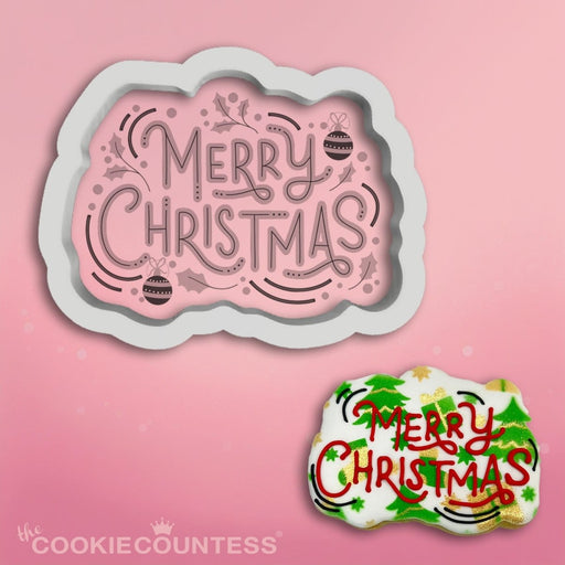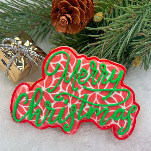 The Cookie CountessMerry Christmas Script Cutter Measures: 3.5" x 2.5 inches All elements of this original cookie cutter were designed by The Cookie Countess with th...