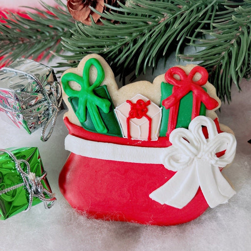 The Cookie CountessSantas Presents Bag Cutter Cutter Measures: 3.75" x 3.5 inches All elements of this original cookie cutter were designed by The Cookie Countess wi...