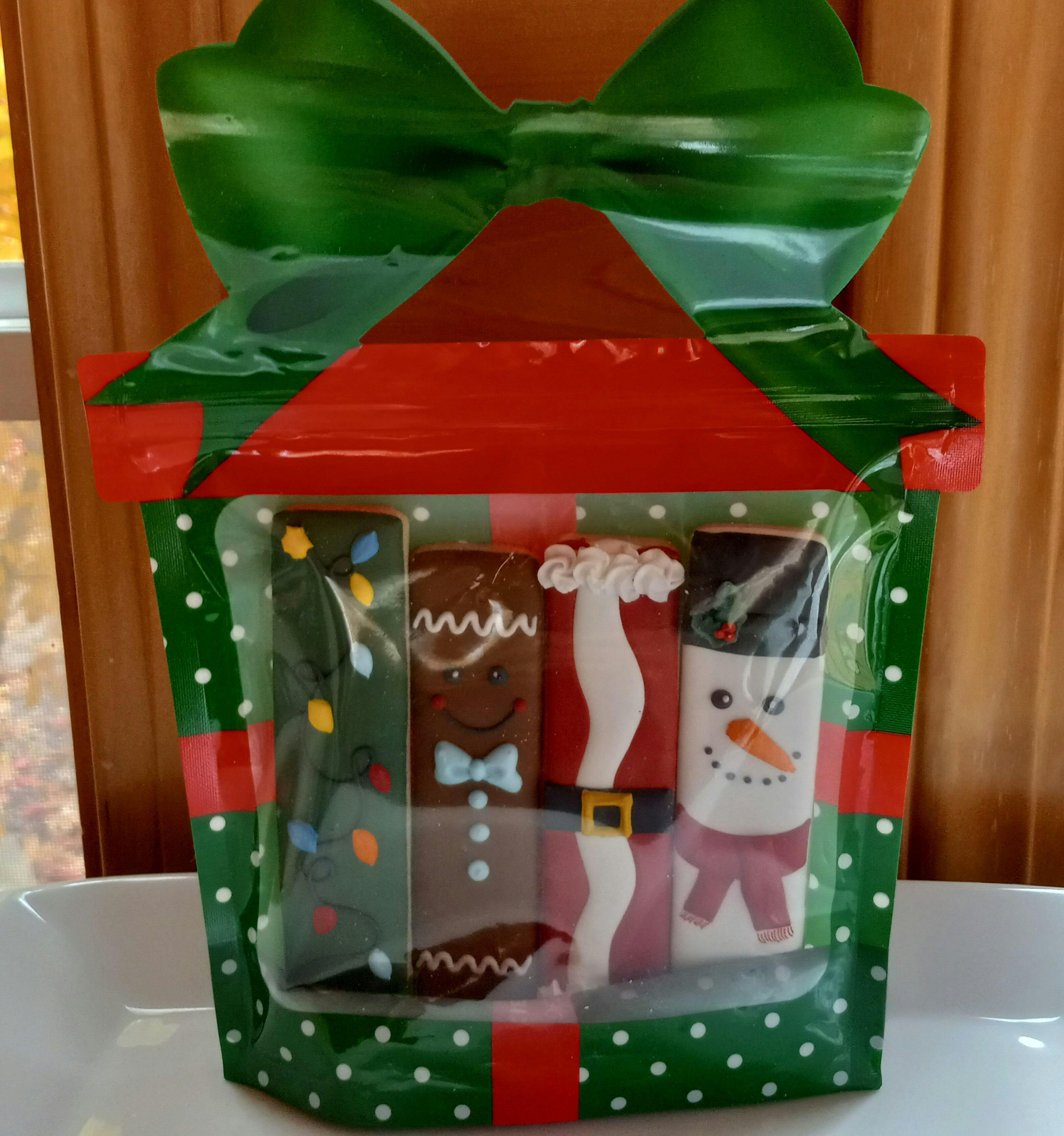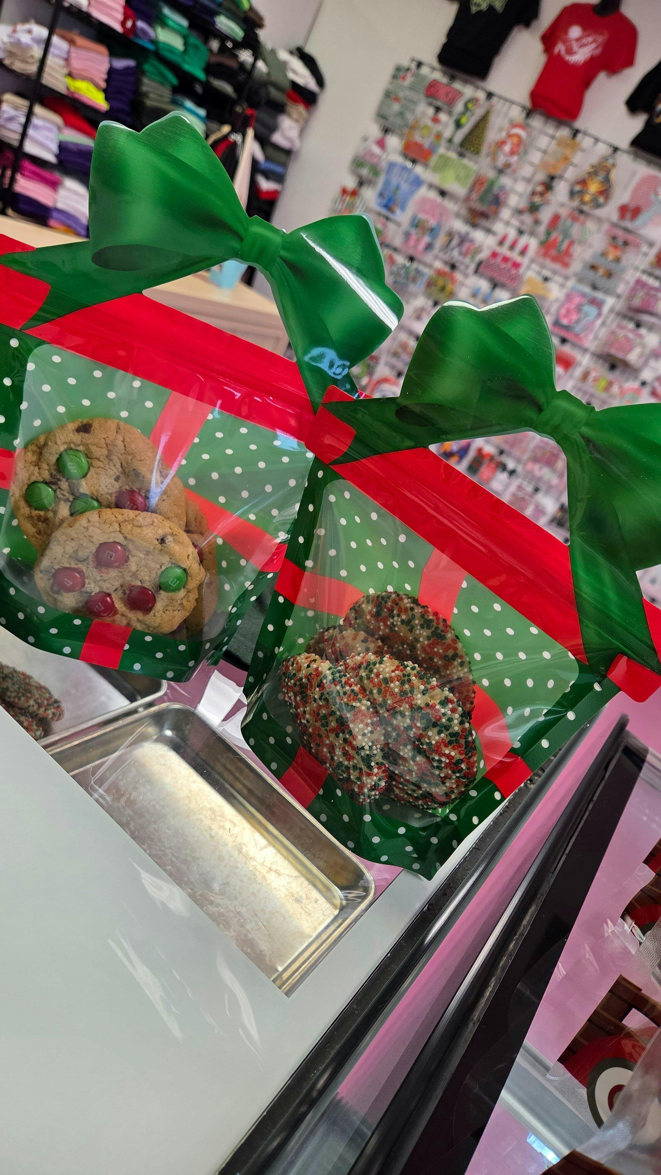 Package your treats in these festive green present bags. The bow works as a handle for this cute pouch! Fill it with Christmas or holiday cookies as a sweet gift.