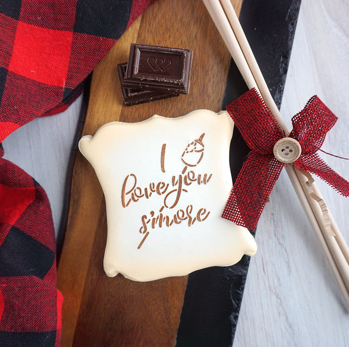 I Love You S'more stencil, cute for Valentine's Day or Camping.