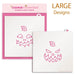 Overall stencil size is 5.5" x 5.5". PINK sections in image are the open sections. Stencils are 5mil Food Grade plastic, washable and reusable.