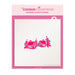 Design size is 3.25" x 1.5".  Overall stencil size approximately 5.5" x 5.5". PINK sections in image are the open sections. Stencils are 5mil Food Grade plastic, washable and reusable.