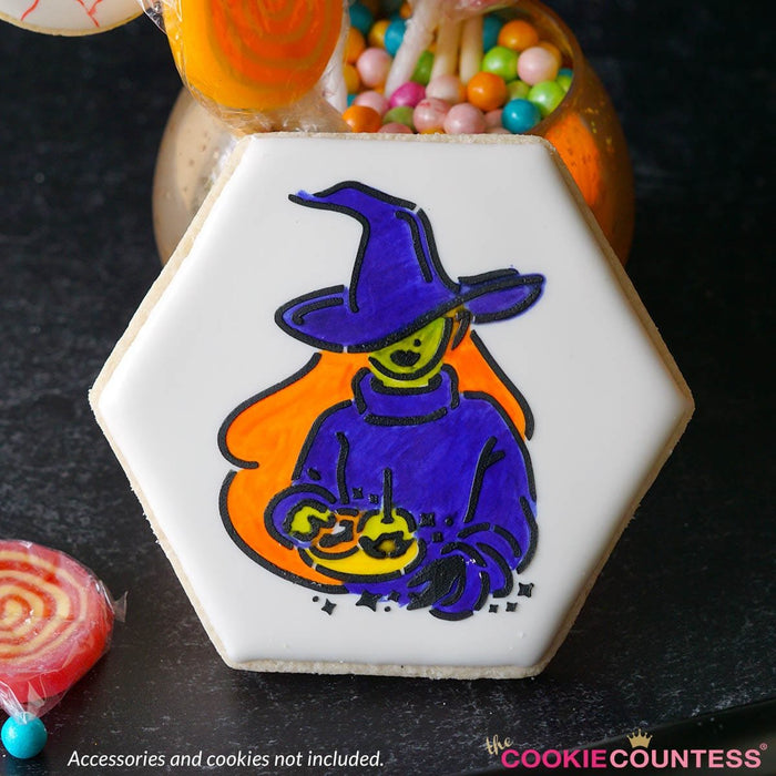PYO stands for "Paint Your Own" Cookie. This popular style of cookie uses a cookie stencil to create a coloring book style design that can be used with one of our Edible Paint Palettes for a fun activity!